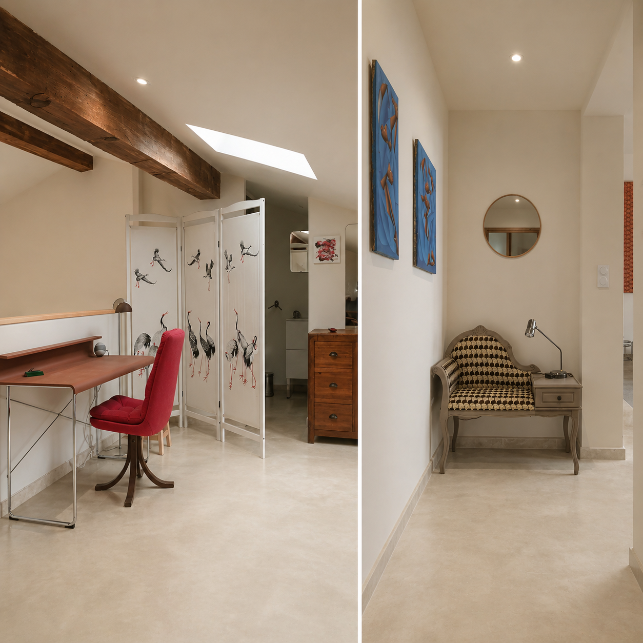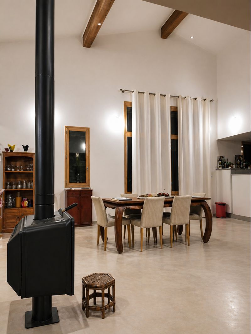 Un niveau R+1 a été rajouté sur deux façades intérieures du bâtiment permettant ainsi d'avoir au coeur du projet une double hauteur spectaculaire de 5.00 mètres au faitage. l'enveloppe de la grange est restée inchangée en effet, aucun percements n'ont été rajoutés pour ne pas dénaturer l'histoire et la fonction primaire du bâtiment. Nous avons du composer avec cette contrainte sur la question de l'éclairage naturel en exploitant deux grandes ouvertures existantes de 3.65 m de haut (une sur rue, l'autre sur la cour intérieure). Les Menuiseries extérieures et intérieures ont entièrement été réalisées sur mesure en chêne par un ébéniste donnant un effet intemporelle au projet. Des ouvertures en toiture placées judicieusement nous ont également servies pour l'éclairage naturel mais également pour la ventilation de l'habitation.